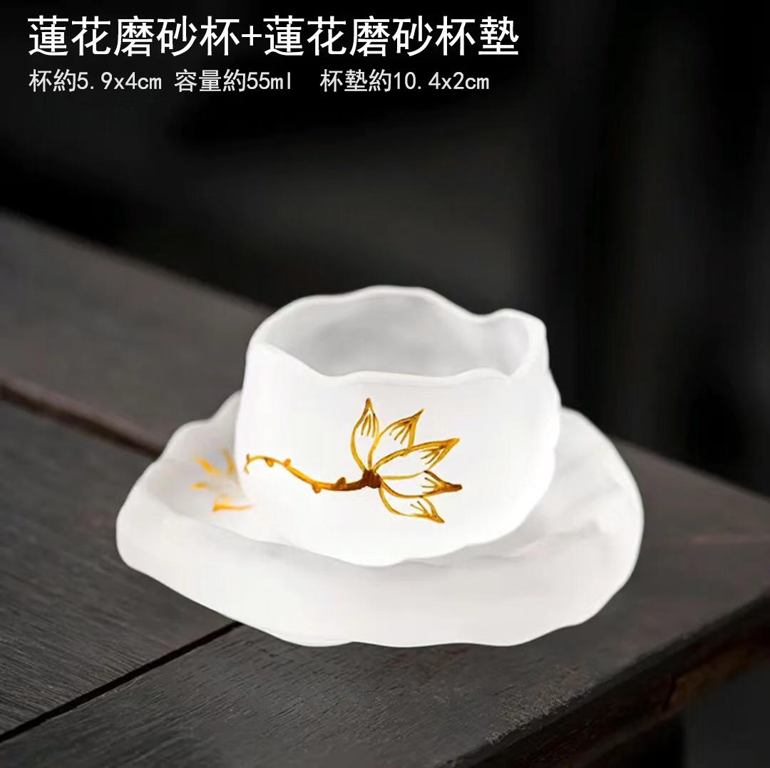 4分鐘前【汀和大福】磨砂玻璃主人杯帶杯墊女士精緻茶杯 - 蓮花磨砂杯+杯墊